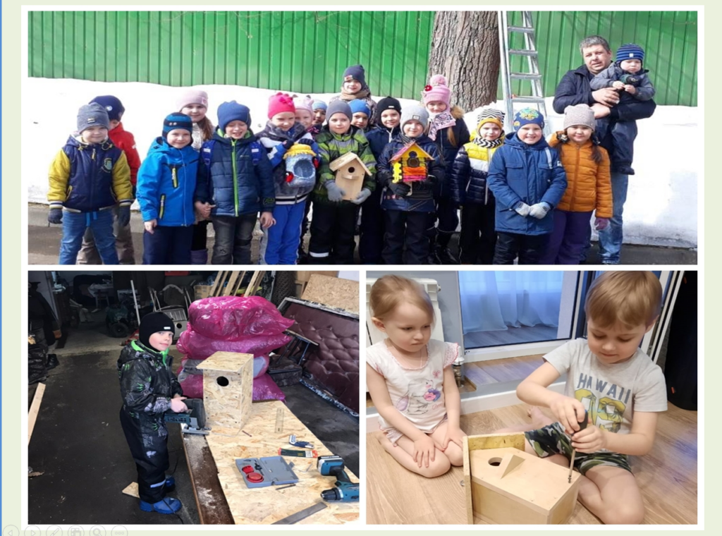 Весна – пора, когда оживает природа, птицы возвращаются из теплых краев. Впереди у них немало забот, в том числе и выбор места для гнездования. Чтобы помочь птицам обрести новое жилище, в нашей группе была проведена акция «Подари пернатым дом». Мы предложили родителям вместе с детьми сделать скворечники. Желающих помочь птицам оказалось немало. Сколько радости и ребятам и их родителям доставило это совместное творчество на пользу природе.