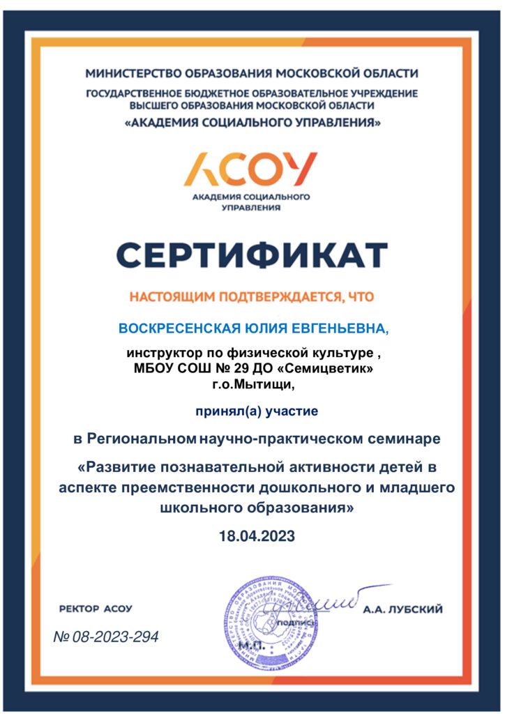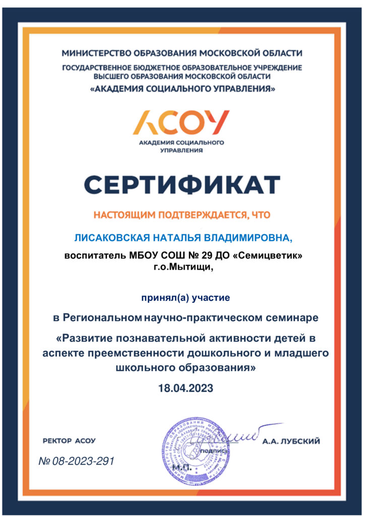 Региональный научно — практический семинар «Развитие познавательной активности детей в аспекте преемственности дошкольного и младшего школьного образования» 18 апреля 2023 год
