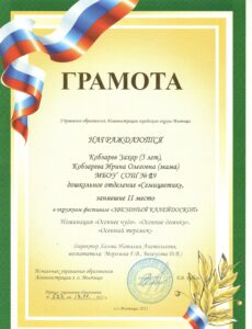 2-е место в номинации «ХУДОЖЕСТВЕННОЕ ТВОРЧЕСТВО»