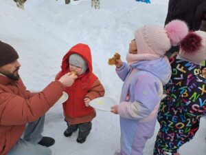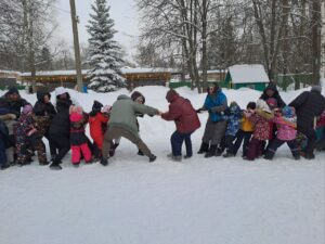 В дошкольном отделении » Семицветик » в преддверии 23 февраля прошли «Богатырские масленичные бои» с участием пап и дедушек. Участники соревновались в перетягивании каната, «кулачных боях», водили хороводы, пели песни про «солдатушек- бравых ребятушек», играли в народные игры, оттачивали мастерство игры на ложках. А в конце праздника по достоинству оценили мастерство мам и бабушек , которые заботливо напекли вкуснейшие блины и приготовили ароматный чай!